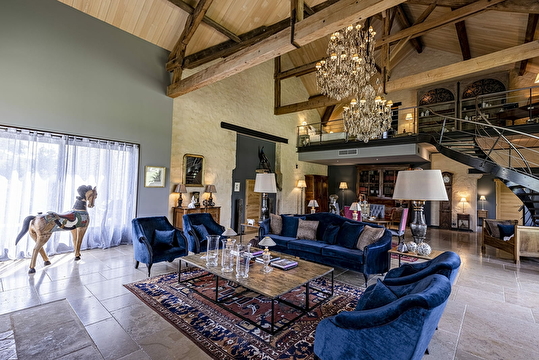 Après une longue journée de réunions, le salon avec sa cheminée vous accueille chaleureusement, créant le cadre parfait pour se détendre et partager.